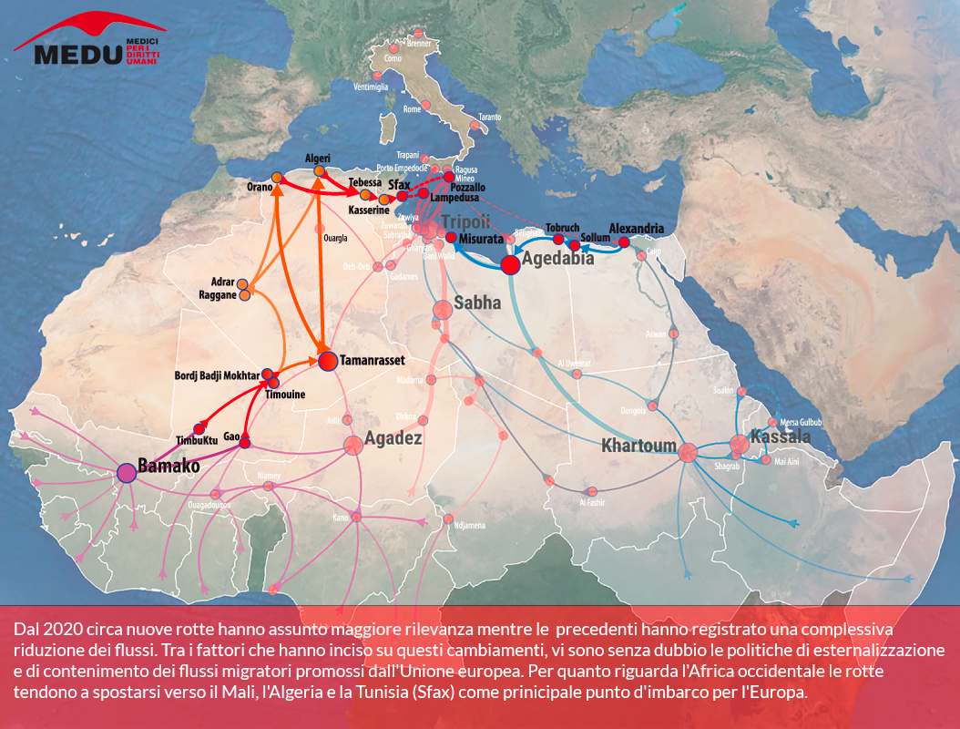 Negli ultimi 20 anni, la popolazione rifugiata è aumentata in modo esponenziale a livello globale – nel 2004, UNHCR registrava 9,2 milioni di rifugiati nel mondo, una cifra che si è mantenuta quasi costante fino al 2012, con 10,4 milioni, per poi triplicare negli ultimi 10 anni, raggiungendo i 36,4 milioni nel 2023 – e, sebbene i flussi diretti verso l’Europa rappresentino una minima percentuale del totale, sono stati oltre un milione i migranti sbarcati solo in Italia negli ultimi dieci anni (2013 – 2023). Nell’ultimo decennio, l’Italia è diventata meta stabile di flussi migratori misti e consistenti. “Misti” in quanto ad arrivare – per lo più via mare, ma anche via terra – sono sia migranti provenienti da situazioni di crisi economica, che persone in fuga da conflitti bellici e da persecuzioni individuali. Il ben noto “effetto migrante sano”, citato da tanta letteratura scientifica, non trova più corrispondenza nella realtà delle migrazioni verso l’Italia e viene sempre più soppiantato dalla “sindrome del migrante esausto”. Tra i circa 1.500 richiedenti asilo incontrati da Medu a partire dal 2014 nei diversi progetti di salute mentale, oltre l’80% ha riferito di aver subito tortura o trattamenti inumani e degradanti nei Paesi di origine e/o di transito, in particolare e in modo sistematico in Libia, un Paese che ormai si configura come una vera e propria “fabbrica della tortura”.